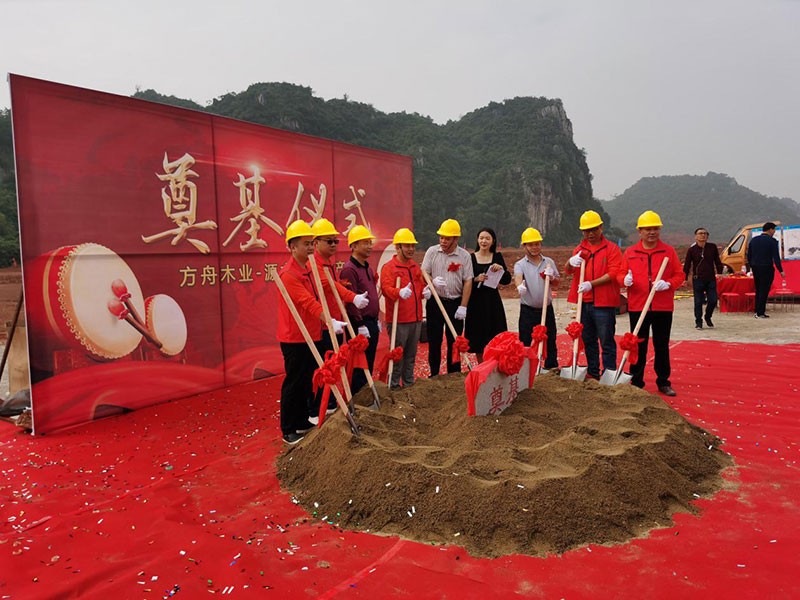 胸有丘壑,腹有乾坤,躬耕全鋁,還木于林。當天,方舟木業在廣西扶綏山圩產業園隆重舉辦生產總部開工奠基儀式。方舟木業董事長章慧明先生、廣西劍麻集團黃道勇董事長先生、廣西劍麻集團紀檢委書記姚勝松書記和汪建強主任、廣西農商銀行山圩支行行長黃文富先生、廣西稅務局扶綏縣分局農局長、方舟木業董事長家人溫小姐和章子豪先生等領導嘉賓以及方舟木業各地分公司代表和10多家重要戰略供應商代表出席了本次開工活動,共同為方舟木業生產總部培土奠基。同時,本次活動也獲得了眾多知名媒體的關注報道。